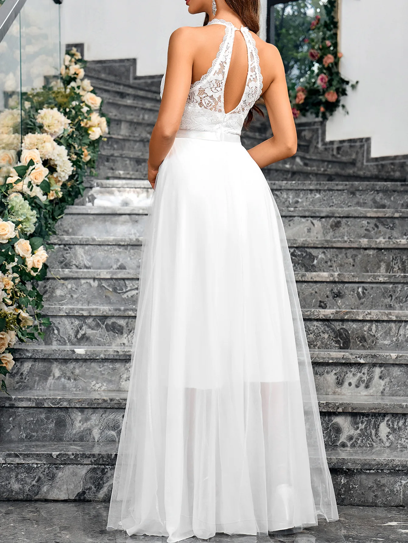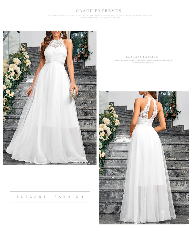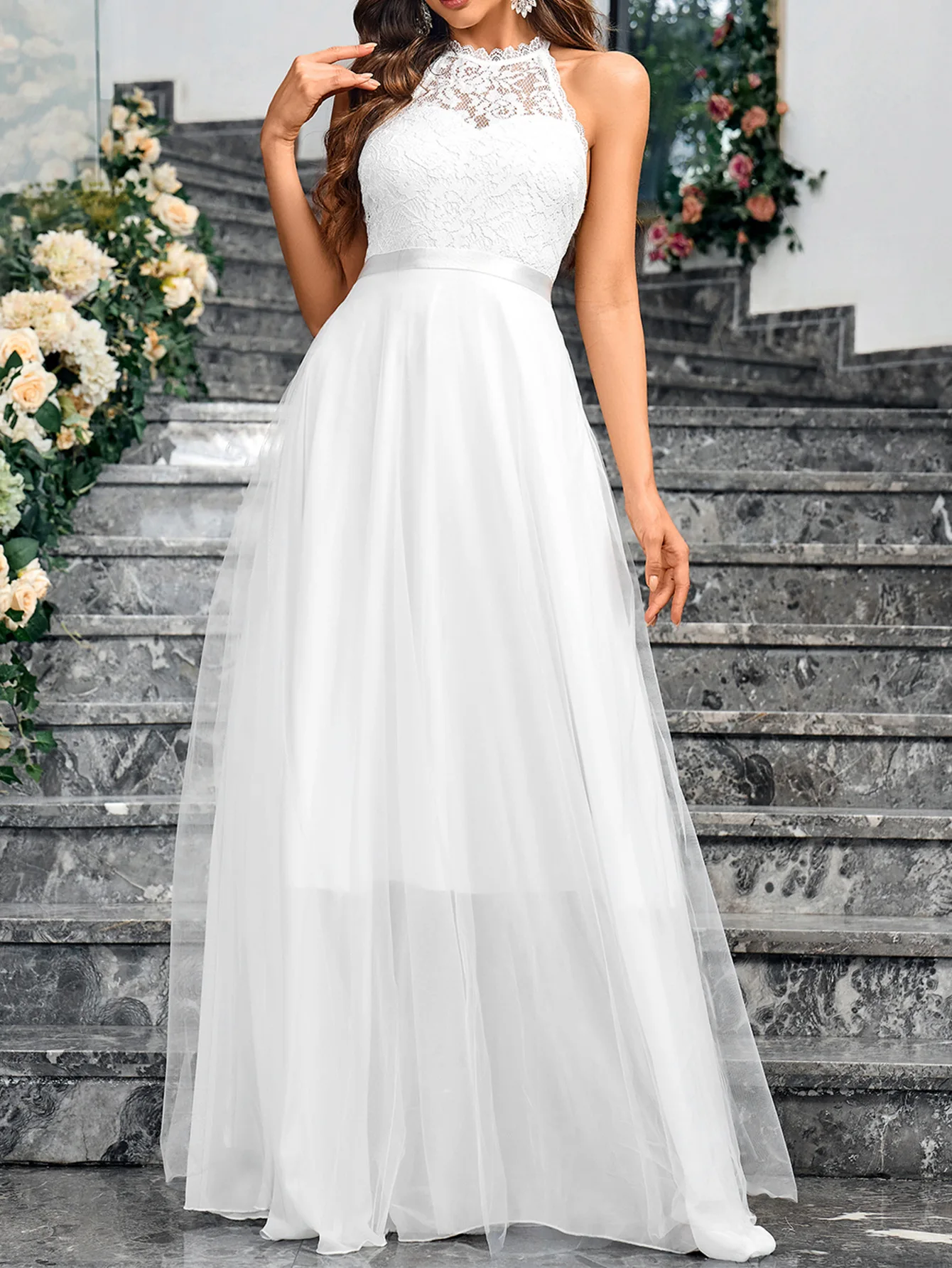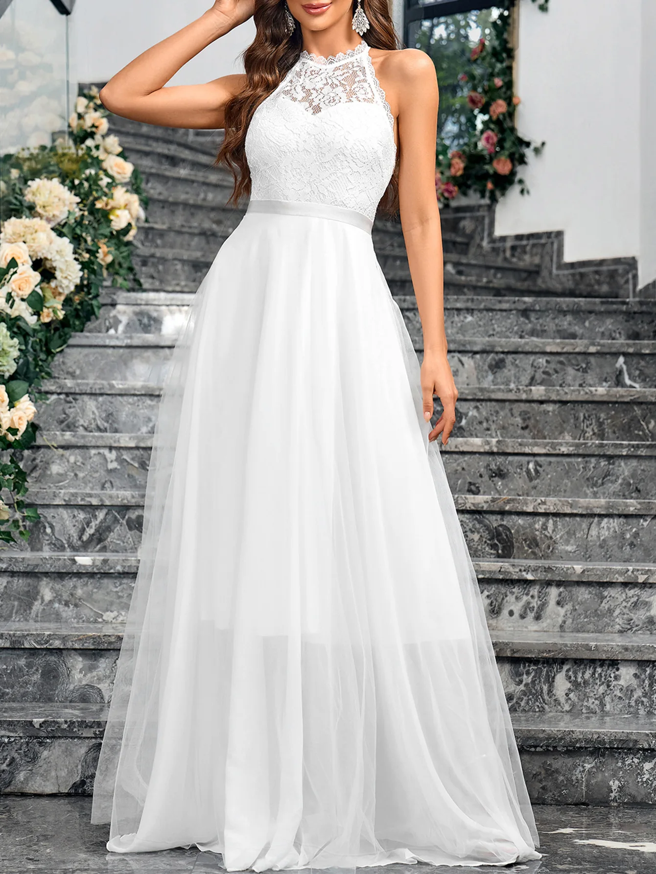 Elegant Chiffon Wedding Dresses Beach Applique Lace Bride Gown Halter Neck Boho Princess Party Gowns Lace-up Plus Size Customize