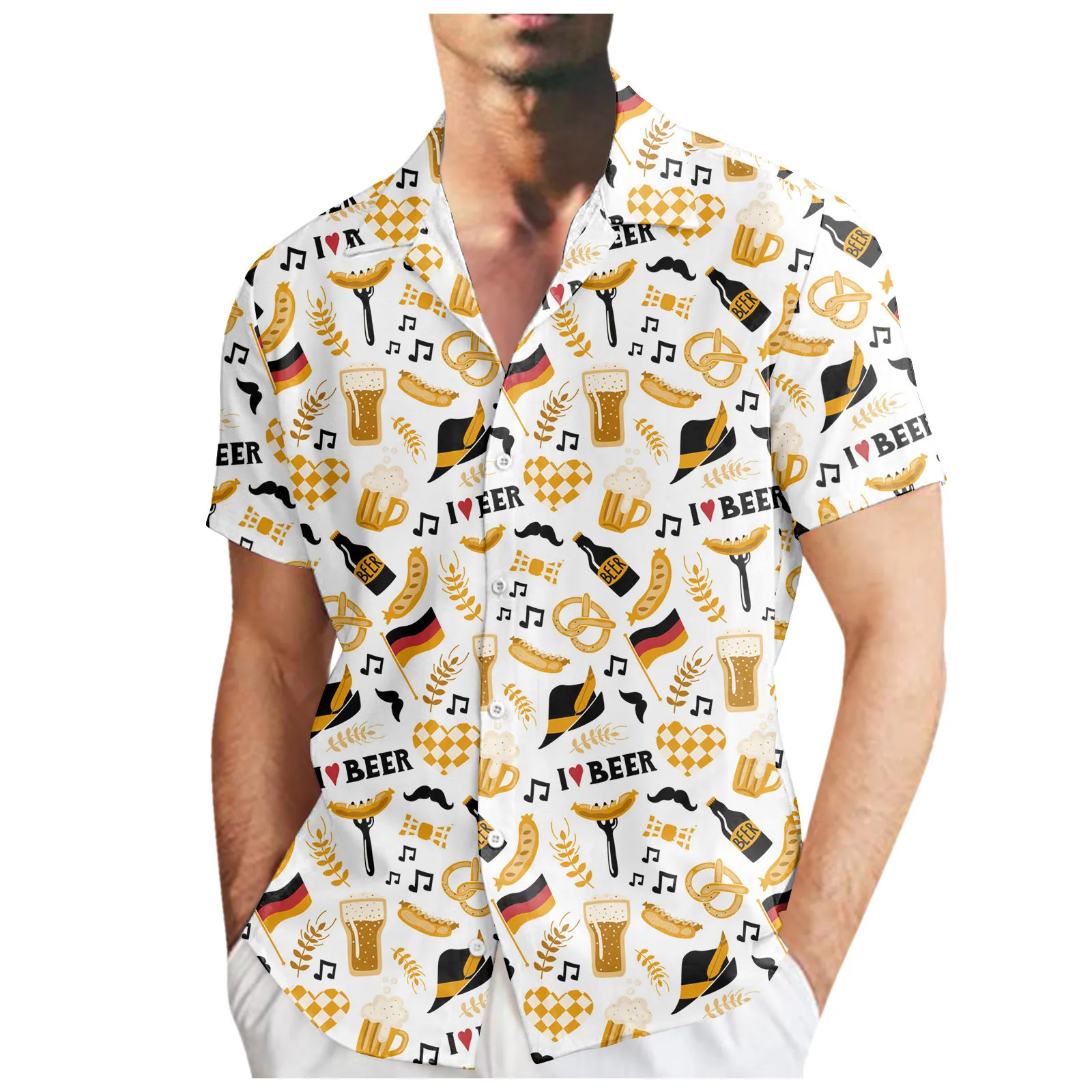 Men’S Summer Fashion Open Front Shirt Hawaiian Style German Oktoberfest Beer Pattern Print Fun Shirts Short Sleeve Beach Clothes