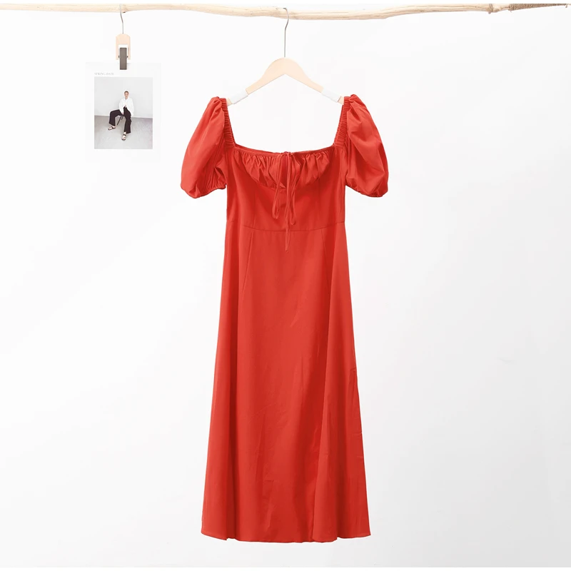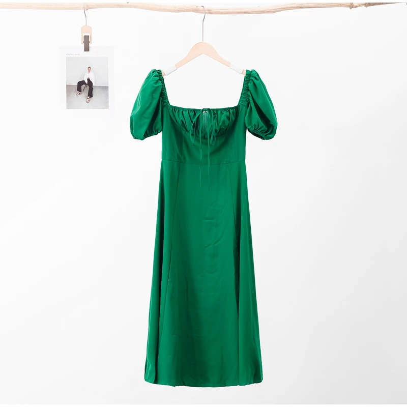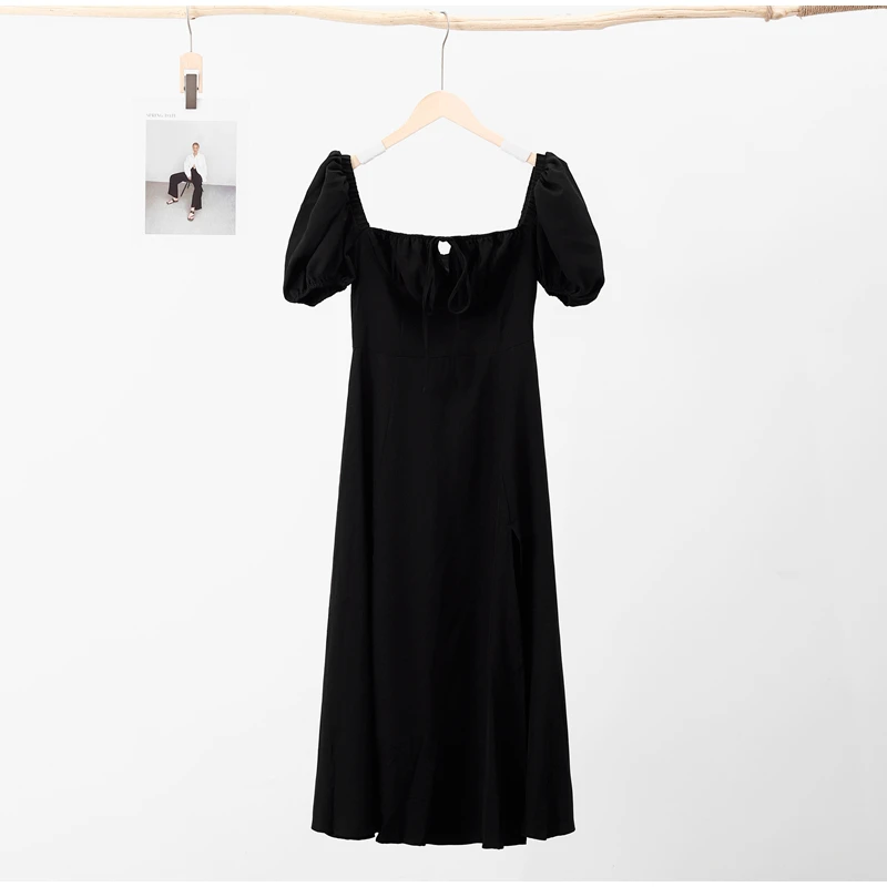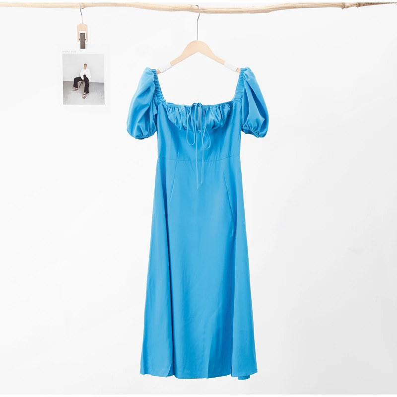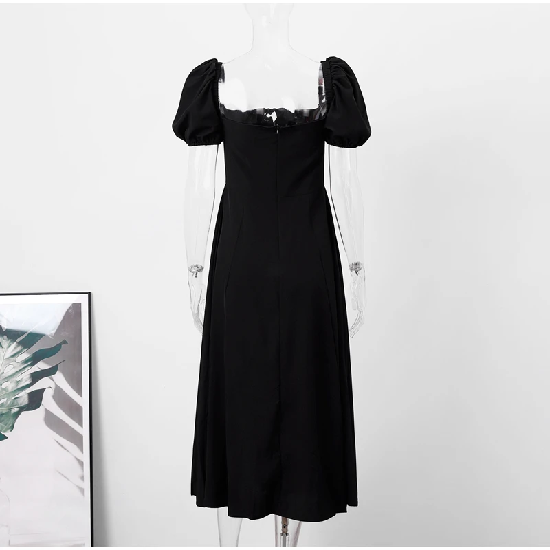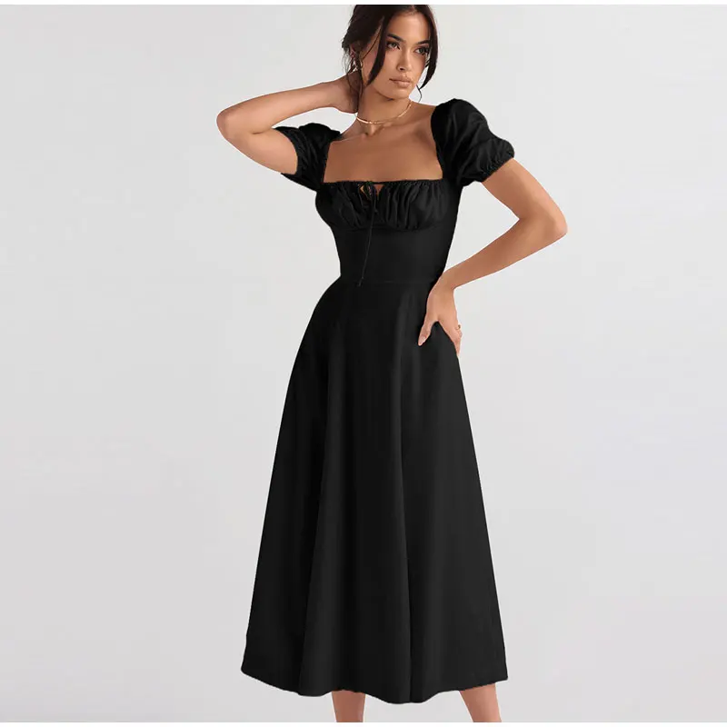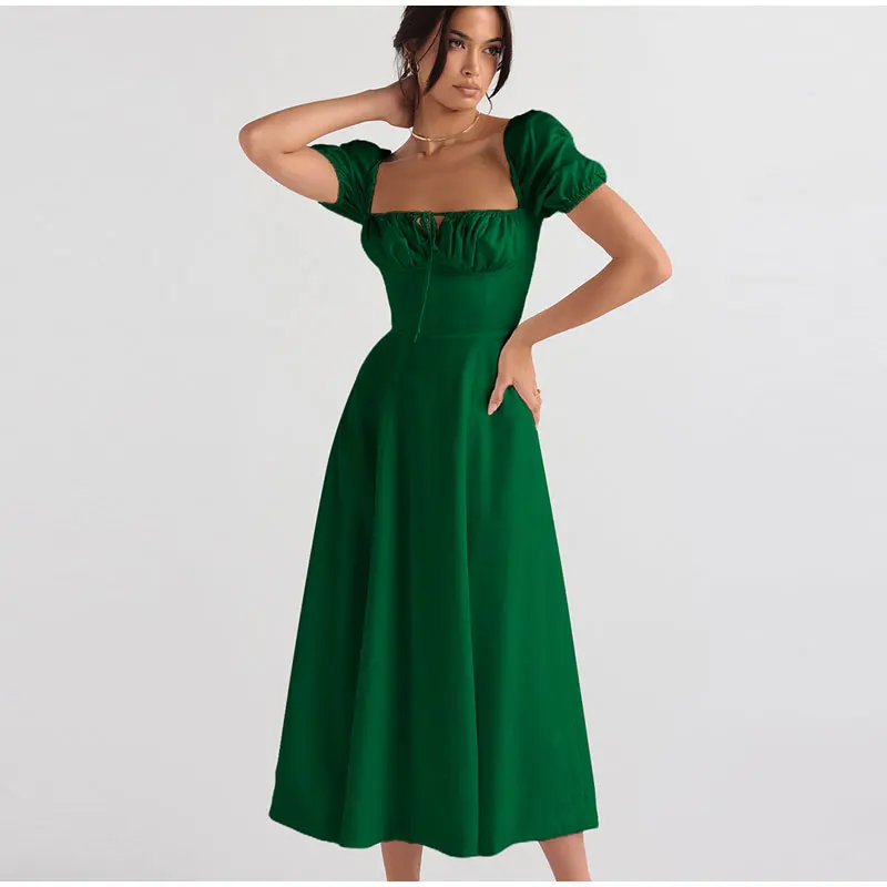 Elegant shoulder Solid Dress Women Summer High Split Bandage Ruched Midi Female Dresses Short Sleeve A-line Lady Robe