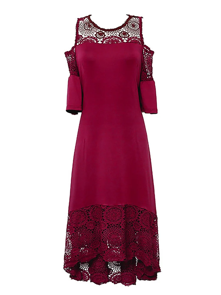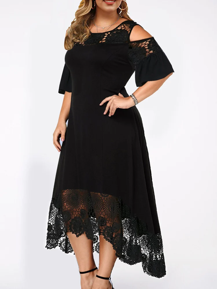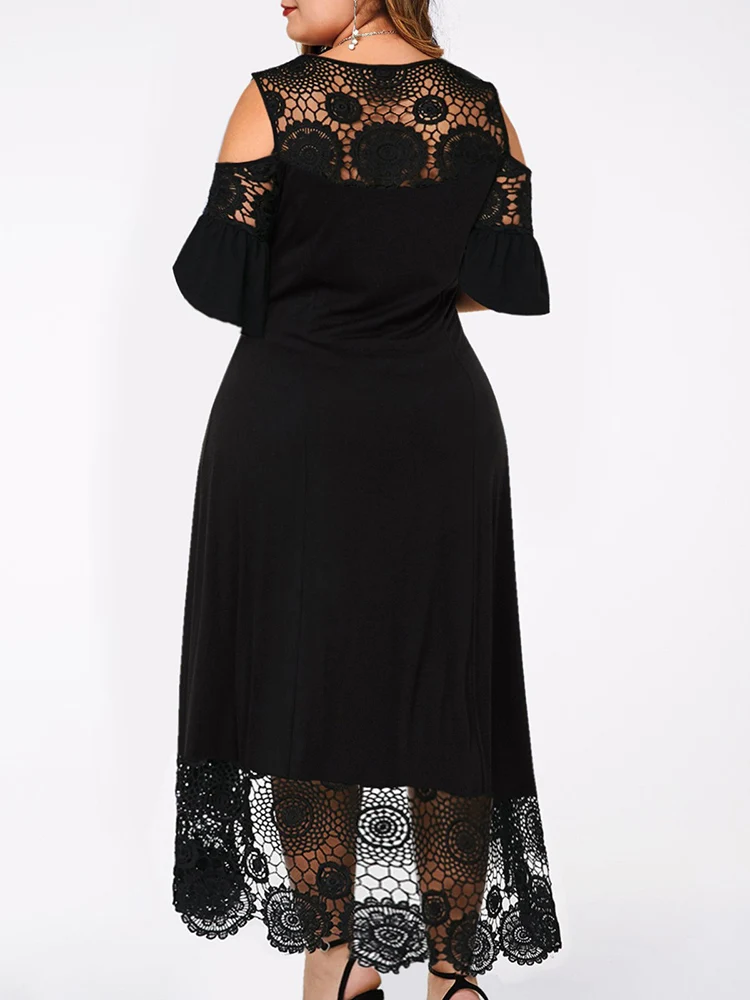 2022 Fashion Women Summer Cold Shoulder Short Sleeve Lace Patchwork Elegant Party Dress Maxi Plus Size Women Clothing