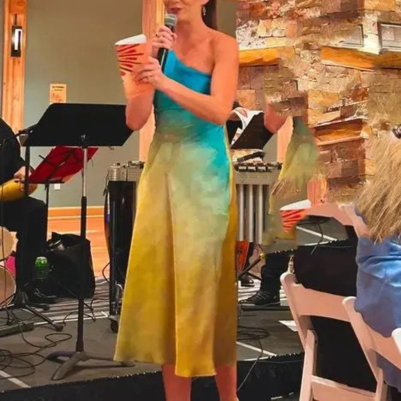 TRAF Tie Dye Satin Dress Women Asymmetric Off Shoulder Midi Dress Woman Summer Knot Long Backless Sleeveless Party Dress
