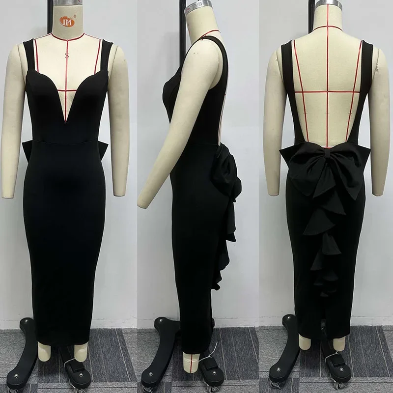 Sexy Plunging V-neck Backless Bowknot Ruffles Bodycon Midi Dresses for Women Party Night Elegant Club Celebrity Prom Dress Robes