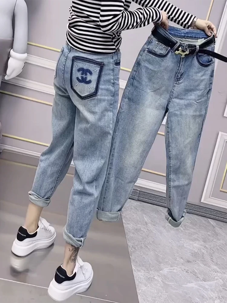 Women’s Jeans Spring Fall 2024 New Harem Pants Fat Mm High Waist Slim Stretch Women’s Pants Trend Y2k